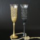 Set of 2 crystal, elegant champagne crystal glasses, hand painted and decorated. Gold and Black design, decorated with Crystal Rhinestones. Delicate glitter effect.The stems and base in gold and shining black.