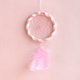 捕梦网材质 : 塑胶环、韩国绒绳(白色+粉红色)、线(粉红色)、水晶珠、羽毛(粉红色)