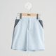 柔软又硬挺的组织纹路布料,搭配上胸前剪接的牛仔布料,