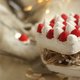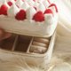 可爱的方形蛋糕首饰盒配有草莓和奶油。