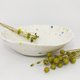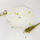 如花粉般的结晶粒洒落在纯手工瓷盘上,布满缤纷欢愉的氛围。