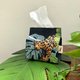 使用市面自选布手作而成,黄金猴的调皮、花豹的内敛,呼应印花款式中明亮的色彩,妆点上大片的雨林植物,除了让餐巾纸有美观的收纳外,也增添居家生活的丰富气息。