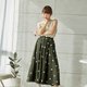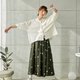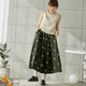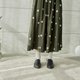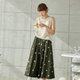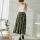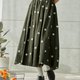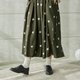**Linen Cotton Paneled Skirt With Polkadot Embroidered - Seaweed Green Color**