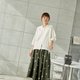 - Linen Cotton Paneled Skirt With Polkadot Embroidered - Seaweed Green Color