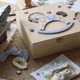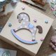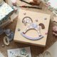 Made from high quality wood. The box includes two compartments for accessories. It closes with a latch. Size: 20 х 20 х 8 cm The box is decorated with a rocking horse, hand-painted with acrylic paint.