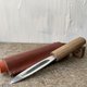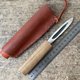 A knife of Northern small nation of Russia. A distinctive feature of the knife is the forms of embodiment of the blade, one side of which has a convex lenticular shape, the other side is a full plane without descent, with a notch on it. A notch reduces the friction of the knife while cutting, making it faster and with less effort.