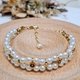 白贝珠搭配14k金,整体搭配简单贵气,垂链也扣上贝珠,垂吊摇曳,气质加分 手链适用14. 5-16围,尾链长短可以依照需求客制