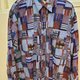 日本古着 格纹图腾 蓝色 棉质 长衬 宽松版 L号