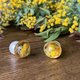 The March flower "Mimosa" was used as a dry flower, confined in a dome-shaped resin (resin), and made into earrings.