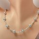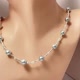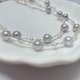 直径约7-7.5mm的天然海水akoya珍珠呈现出明媚的银蓝色炫彩,就像是晴空万里的天然美感,颗颗珍珠有强光炫彩,且炫彩具有层次一感,虽有微瑕微生长纹,整体与天然淡水baby珍珠间隔排列成一线并由s925银14k注金的切花配件间隔排列呈现出微波般的色彩层次感,是为满天星河。纱织小姐为其配以龙虾扣,形成总长约49+4cm的华丽轻奢款项链毛衣链。你可以一边摇曳生姿,一边简约美好,可以点亮你的所有简单衣裳。美好的天然淡水珍珠表面呈现出难以名状的炫彩色调,自然光下每一颗都分别呈现出各自的七彩光芒炫彩,皮光细腻,微瑕炫彩,似镜面可照出人影,美得不可方物。