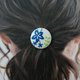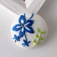 中央以闪耀水钻点缀,将蓝色小花的刺绣巧妙地融入包扣设计。