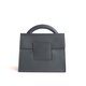 - Structured leather bag, curved shape handle, magnetic slip closure, removable shoulder strap.