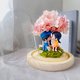 在这浪漫的玻璃罩内,一对情侣甜蜜依偎于樱花树下,象征着爱情的纯洁与美好。粉色的绣球花宛如盛开的樱花树,柔和的色彩营造出梦幻的气息,让人感受到温暖与幸福。绿意盎然的苔藓衬托出自然的生机,仿佛静止的时光只为见证这一刻的深情。