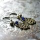 这款耳环串联了姆萨、蓝色古董珠与民族铃铛。