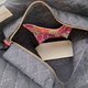 表里布是铺棉,六角形体以金葱线手缝压线,滚边设计贴合,袋口有拉链盘内有一开放袋,底部有底版耐重量。拼布类机缝与手缝概念,乃备材与工时,只卖现货。