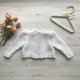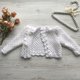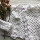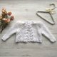 Knitting jacket for baby girl. Jacket with pearls. Can be in white, ivory, pink, red and blue colors.