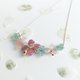 湖水蓝+淡豆沙红+紫红色绣球花 (真花) / 18K包金錬条 / 锆石配件 / 施华洛世奇平底钻
