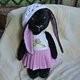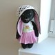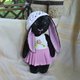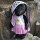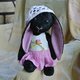 这款身穿粉色洋装的黑兔女郎,采用复古绒毛材质制成,内填松木屑。头部与四肢以关节销固定。洋装为手工缝制的棉质,帽子则是钩针编织而成。尺寸:站立时高约 9.1 英寸(23 厘米),坐姿时高约 7.5 英寸(19 厘米)。清洁方式:干洗。