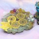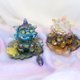 不同于市面上的滴胶水晶作品,PF的奥根盘皆秉持奥根工法,以满满的滴胶、水晶和金属的混和所制成。奥根盘提供奥根与更多玄秘元素结合的可能,融入风水、神话、童话风格,并提供灵兽与精灵居所。奥根盘犹如一个自成一隔的小世界,除了安放合适的象征物链接不同的能量,上下皆为奥根,免除被低频寄宿的风险。