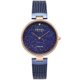 ◆表壳:316L不锈钢电镀玫瑰金,表带:不锈钢米兰编织表带电镀蓝色