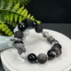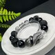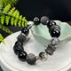 暗夜星河,守护之链。手串以银曜石为基调,深邃如夜空,缀以白水晶的纯净与黑发晶的凌厉,形成能量平衡。星球珠如悬浮的宇宙陨石,神秘而深邃;并蒂莲缠绕共生,象征永恒之爱;灵蛇盘踞智慧暗藏,醒狮怒目镇煞辟邪。收尾处足银凤凰昂首展翅,寓意浴火重生。每一颗珠子都承载古老传说,暗光流动间,既是护身符,亦是风格宣言。