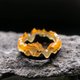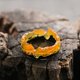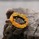 The wood resin ring "Fire" is made of black hornbeam wood and orange jewelry resin.