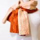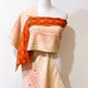 整件作品由古董丝质和古董毛料组成,适合四季使用。即使夏季在冷气房也不用担心着凉。饱和的橘色搭配素面衣服就很有主题性,下身简单搭配牛仔裤就很抢眼。
