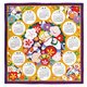 这款风吕敷的主题为“圆日历”,设计巧妙而温馨。在富士山下的花卉图案中央,一对亲密的马儿开心的嬉戏着,象征着亲子之间深厚的爱与温暖。围绕着这对亲子马儿,是以十二个月日历组成的圆形图案,将一整年的时光浓缩于方寸之间,如同一个充满爱的圆满循环。