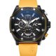 此系列为三眼计时码表设计,在表盘配置上,4点位为日期显示窗,6点位为码表功能时分盘,9点位为小秒盘,12点位码表功能的1/20秒。