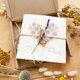 - 透明雾面纸的礼品包装,缀以麻绳和一小束薰衣草;