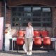 #8分宽裤卡其色 + #条纹短版外套红米色
