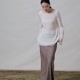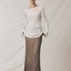 - 【桑蚕丝100%】新中式复古 轻薄网纱/收腰喇叭袖上衣