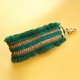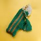 纯棉绳手工 macrame 编织,鲜艳饱和的绿色搭配橘褐色与麻绳,可作为手机挂绳、钥匙圈或包包吊饰。