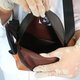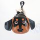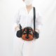 腊肠狗造型侧背包,尺寸约 20x20x5 厘米,背带长约 120 厘米,背带坚固且可调整长度,采用高品质颜料于合成皮革上进行手工绘制,车缝精致。