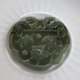 这是一件天然A货翡翠雕牌,无优化处理,器形完整,重量23.9克,直径约五厘米,厚度约0.5厘米。材质为油青种翡翠,属于翡翠中一种色泽沉稳、质地细密的类型,色调为深绿偏灰的古朴色阶,整体呈半透明状,部分位置色带分布不均,具天然翡翠独有的灵动质感。此件为天然A货,未经染色或灌胶处理,保持原矿的自然纹理与结构。整件翡翠雕牌的上方以镂空技法雕出对称的双螭龙,造型浑圆简练,螭龙面对面而立,口微张,颈部有卷云纹饰,四肢简化为卷曲纹线,气势稳定又不失灵动。双龙之间中空部分呈长方形开口,为吊挂穿绳之用,兼具实用与造型平衡的功能。双龙对望,寓意阴阳协调、镇守四方,也象征忠诚与守护,为古玉常见的构图安排。雕牌的A面主体雕饰三只老鼠,各以不同姿态呈现,位置错落有致,一只老鼠仰首上跃,另一只盘踞于中段,尾部自然卷曲,第三只则在下方匍匐而行,姿态灵巧。三鼠之间点缀圆珠图案,营造出鼠戏之意。老鼠在传统文化中虽非祥兽,但因其繁衍力强、活动敏捷,常被视为灵巧与机敏的象征,在古代玉器中常用来祝福多子多孙、生生不息,也寓意财源滚滚。三鼠共聚,有“三生万物”、“三阳开泰”之意,亦有民俗中“鼠来宝”的寓意。雕牌的B面则为如意纹饰,线条较为流畅柔和,以浮雕技法呈现出一柄弯曲流转的如意柄,整体造型优雅自然。如意在传统文化中象征顺利、如心、万事称意,与A面老鼠戏珠的动感形成一静一动的对比,彼此呼应,使整件作品在构图与寓意上更具完整性与丰富性。这件翡翠雕牌的雕工属于中上水准,线条流畅自然,雕面光滑,尤其在老鼠与如意的线条上,可见古法玉雕“阴刻”与“阴阳线”交错使用,既保留立体层次,又具古朴神韵。虽然油青种在翡翠分类中并非高阶种水,但其稳重色调与雕件主题相得益彰,特别适合呈现传统寓意深厚的题材。这类作品不以种水取胜,而以整体意涵、构图完整性与工艺手法来展现价值。这样一件兼具守护寓意与生活吉祥象征的翡翠雕牌,不仅可作为日常配戴的护身物,也可作为文玩收藏、礼赠亲友之用,其主题古意盎然、寓意吉祥,是一件值得长久珍藏的翡翠作品。