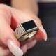 - 【名称】墨翠翡翠无事牌戒指 925纯银 【尺寸】裸石尺寸:11.8 x 7.8 x 1 mm 【产地】缅甸 【颜色】黑 【备注】天然缅甸玉翡翠A货、戒围活围 【编号】EL20230301-17EL