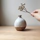 这个10.5厘米高的花器是由带有黑色长石陶土手工捏制成形,圆弧花器底部削切有如岩石棱角,器型手作感十足,白釉显现斑点,独特釉彩,不挑植物皆适合插,干燥植物也很美,即使不插花也是有朴韵的摆饰,增色室内一隅的气质。