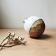 - 这个10.5厘米高的花器是由带有黑色长石陶土手工捏制成形,圆弧花器底部削切有如岩石棱角,器型手作感十足,白釉显现斑点,独特釉彩,不挑植物皆适合插,干燥植物也很美,即使不插花也是有朴韵的摆饰,增色室内一隅的气质。当然,也可以盛酒小酌。