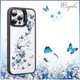 iPhone 15系列 防震双料隐形立架彩钻手机壳-蓝色圆舞曲-黑框