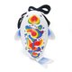 彩虹鲤鱼造型斜背包,包身尺寸约 15x26x5 厘米,背带长度超过 120 厘米,背带坚固且可调整长度。采用高品质颜料于合成皮革上进行手工绘制,车缝精致,内部衬有海绵,为您和您的随身物品提供舒适的保护。包内有两个隔层,一个较宽敞,另一个较窄,适合放置必需品。