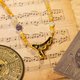 ♥ 此商品纯银镀⾦主坠配金砗磲珠串。
