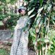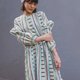 披领剪裁印花伞式长洋装