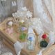 材料:棉,绣球花干花,玻璃瓶