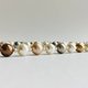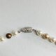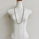 这款是使用玻璃素材的原珠,以原创珍珠涂料经过多层涂覆制成的日本制造玻璃珍珠项链。珍珠色彩采用了质感细腻、光泽柔和的棕色系、灰色系、米色系、奶油色系等多种不同颜色的珍珠。珍珠之间点缀着约2.5mm的树脂珍珠珠。珍珠尺寸为直径8mm,全长约80cm,属于可轻松佩戴于衣物外的歌剧院式尺寸。扣环则采用了原创设计的日本制插入式款式。