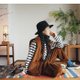 外面:呢料拼布 / 內面:焦糖色燈芯絨
