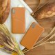 头层皮革包覆 PC 硬壳,绒布内里全面地保护你的手机