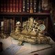 - 非常美丽的古董物件,这个墨水架非常大,置笔架有两处,架上有一个大空间的平面处,是用来置放信件或印章等等的物件,摆在桌面或玄关桌上非常的气派,在欧洲的纹饰意义中,也有驱邪避凶之功能,就如同欧洲教堂上的Mascaron浮雕意义相同。