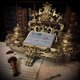 非常美丽的古董物件,这个墨水架非常大,置笔架有两处,架上有一个大空间的平面处,是用来置放信件或印章等等的物件,摆在桌面或玄关桌上非常的气派,在欧洲的纹饰意义中,也有驱邪避凶之功能,就如同欧洲教堂上的Mascaron浮雕意义相同。