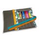 ●右侧笔插格可将常用到的笔分别放置,一旁拉链分层可收纳尺、橡皮擦、立可白、笔记本、便条等非笔状文具用品,笔卷可依照适当的大小卷起固定全部文具。