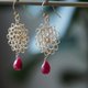 - 天然红宝石 手工金属勾织耳环 14KGF Ruby earrings 幸福就是可以将手工的温暖传达给您。